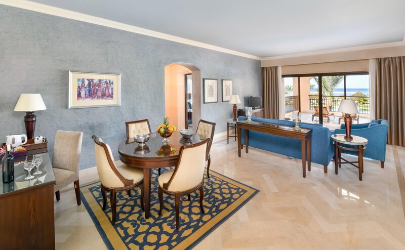 ALL INCLUSIVE: Samoposlužni doručak, ručak i večera, tijekom dana grickalice, sladoled, kava i kolači u baru La Perla Pool, razne lokalna alkoholna i bezalkoholna pića od 10 do 24 sata (uvežena pića uz doplatu). Piće u disku uključeno je od 22 do 24 sata, a od 24 do 2 sata uz doplatu. Dva puta tjedno (uz boravak od najmanje 7 dana) moguće je uz prethodnu rezervaciju (u nekim slučajevima uz doplatu) večera u jednom od 5 à-la-carte restorana. Nije uključeno u all-inclusive: uvežena alkoholna pića, mini hladnjak i vodene pipe (od 19 do 24 sata u Shisha-Corner nisu uključene), spa i salon ljepote. Na večeri je poželjno primjereno odijevanje, duge hlače su obavezne.